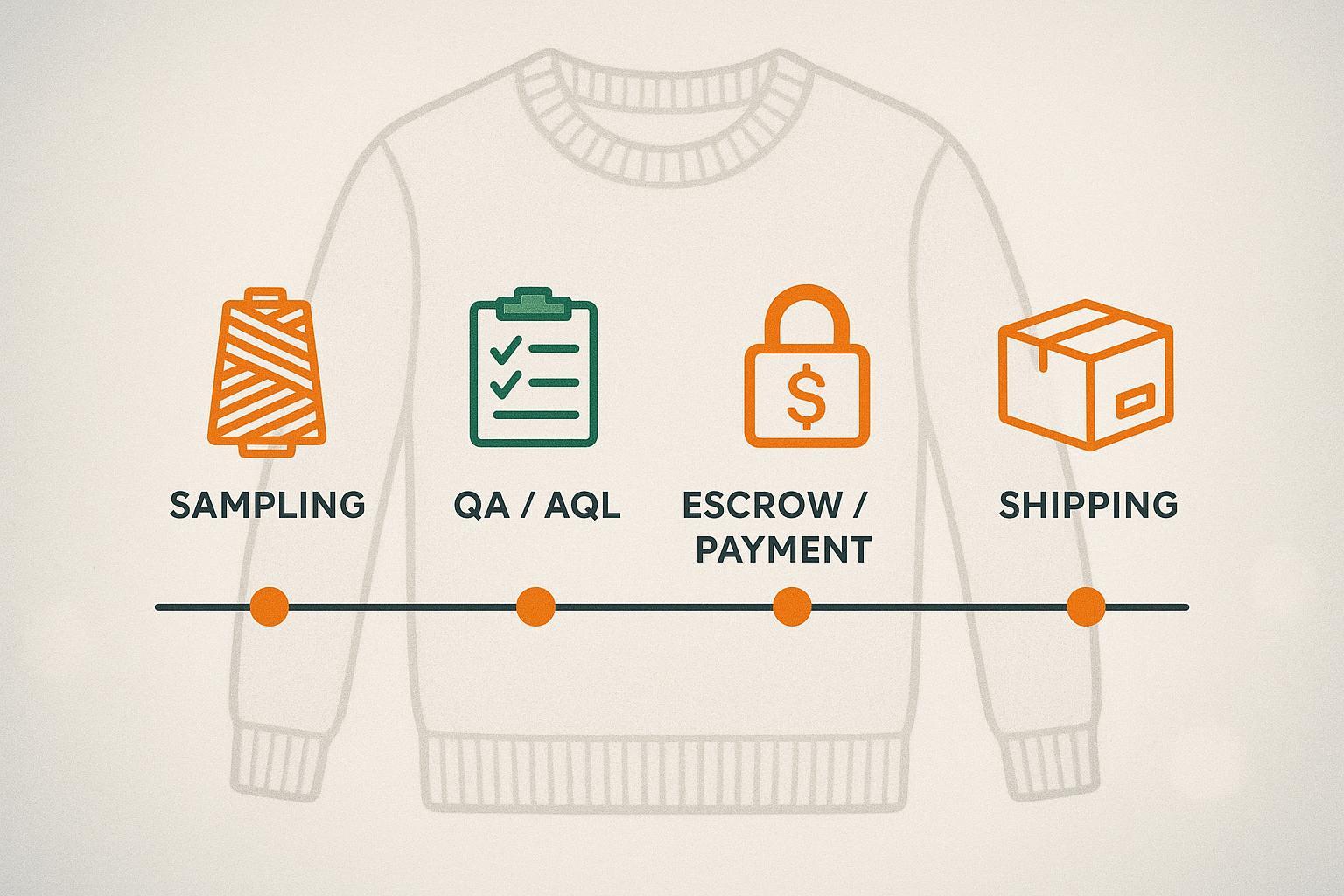 Here is how a typical milestone flows in practice. After the tech pack is frozen, the brand issues a purchase order and places a 20–30 percent deposit in escrow. Xindi schedules rapid prototyping, often within three to seven days when we are knitting on known yarns and familiar stitch families. The fit loop follows with annotated measurement tables and tolerance checks. On pre‑production sample approval, preliminary lab tests for pilling, dimensional change, and color fastness are uploaded to the job folder. At this point, the mid release is triggered and the escrow platform releases the 30–40 percent tranche automatically. Inline controls track yarn lot and machine tension, and a mid‑run pilling spot check is booked for risk styles. A final AQL inspection uses the agreed sampling plan and defect class targets. When the inspection passes and the forwarder issues the transport document, the platform signals the balance release. This sequence keeps cash aligned with evidence while keeping the schedule moving.