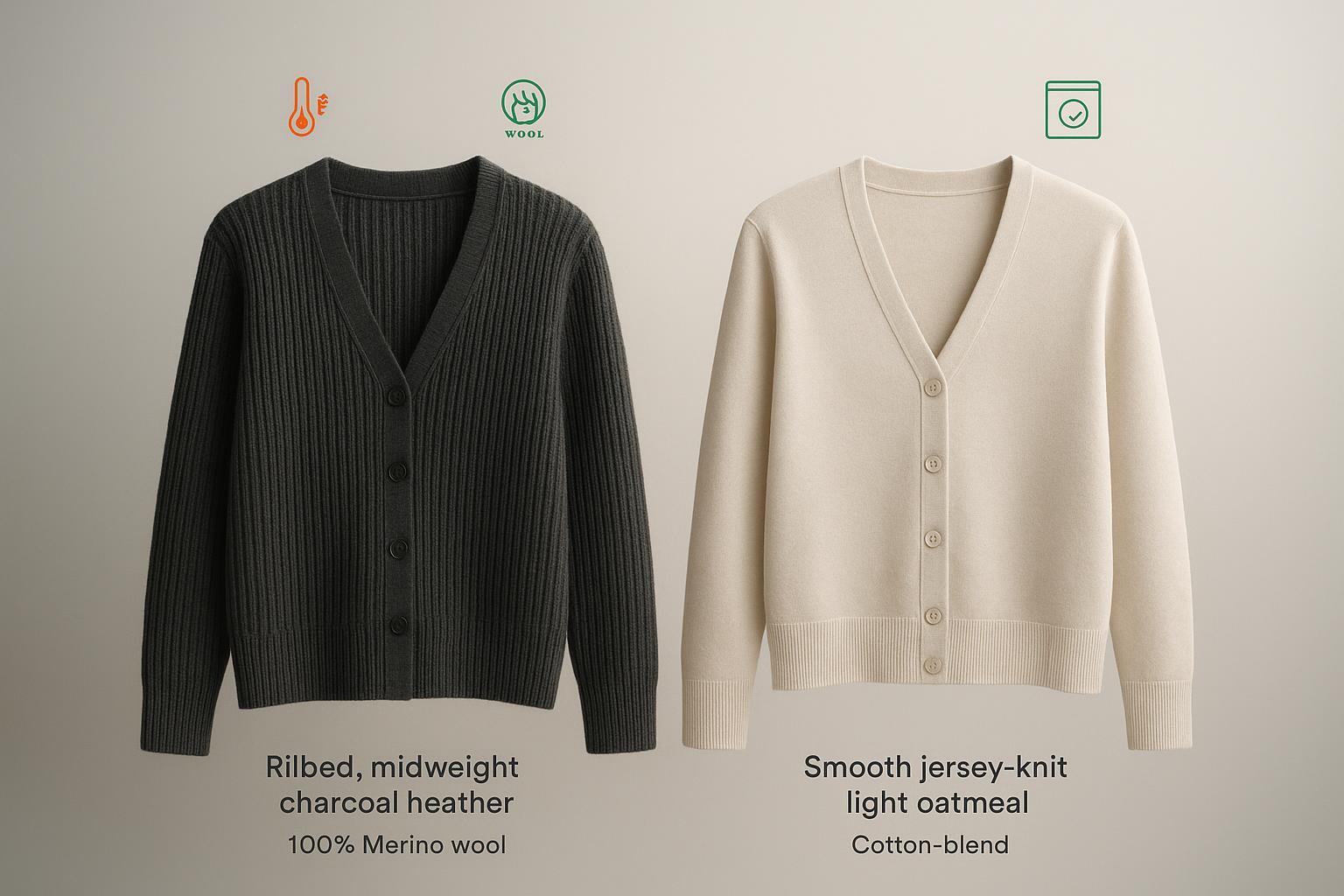 Merino vs cotton blend cardigans: side‑by‑side specs